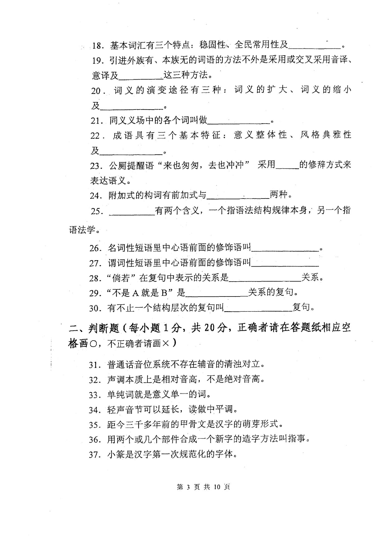启用前机密 北京大学 2010 年硕士研究生入学考试试题 考试科目:汉语基础 考试时间:2010 年 1 月 10 日上午 招生专业:汉语国际教育硕士 研究方向 请将答案写在答题纸相应的位置上。考试时间为 180 分钟。 壹 汉语语言学基础知识(共 80 分) 一、 填空题(每小题 1 分,共 30 分 但 ...