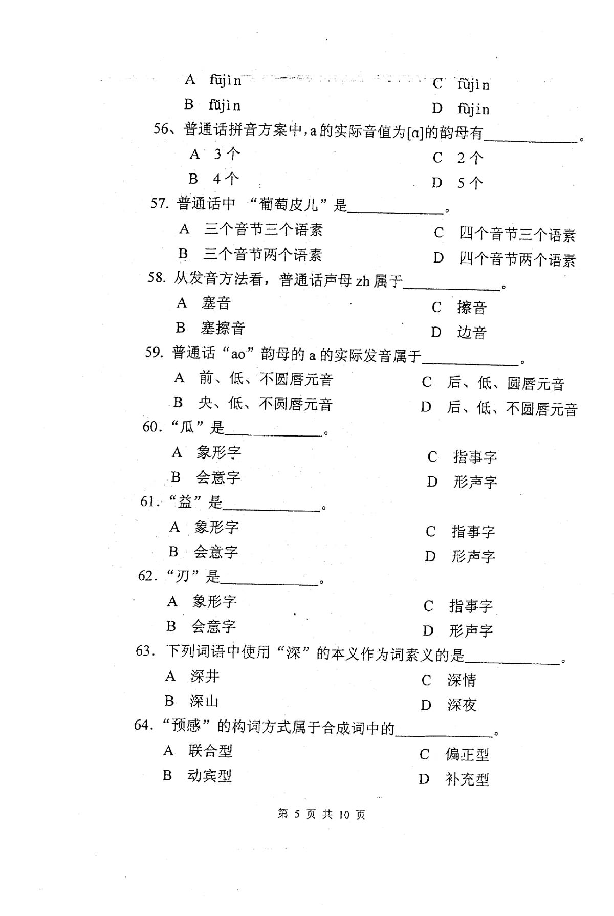• 北京大学2010汉语基础考研真题