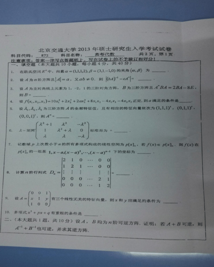 专业课考研资料 本站小编 免费考研网 2016-01-012011-2010年南开大学高等代数考研试题