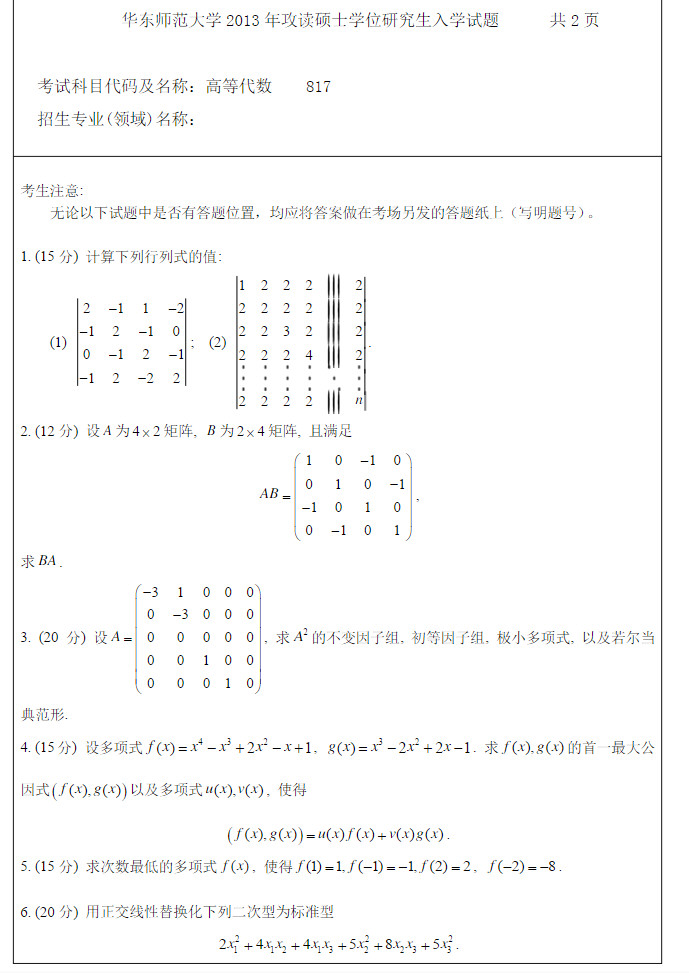 华东师范大学2013高等代数考研真题
