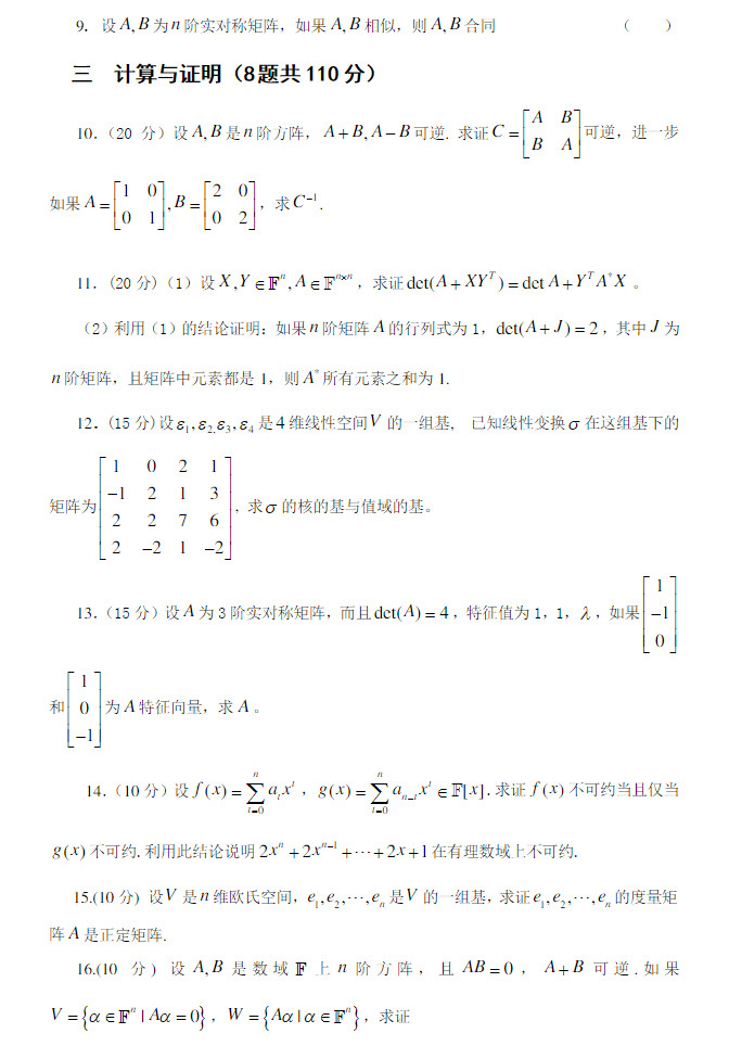 专业课考研资料 本站小编 免费考研网 2016-01-012011-2010年南开大学高等代数考研试题