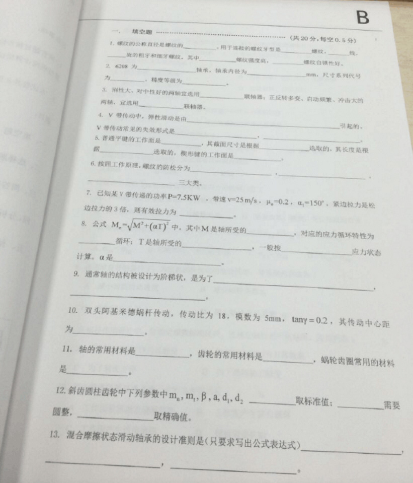 北京航空航天大学2015-2016机械设计期末考试试题(2)