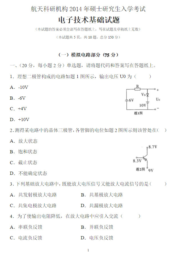 专业课考研资料 本站小编 网络资源 2015-07-132014年北京理工大学电子技术基础考研真题