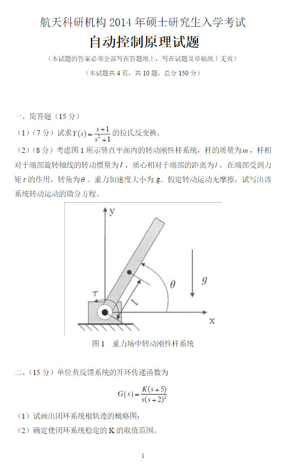 中国航天科研机构2014年自动控制原理考研真题