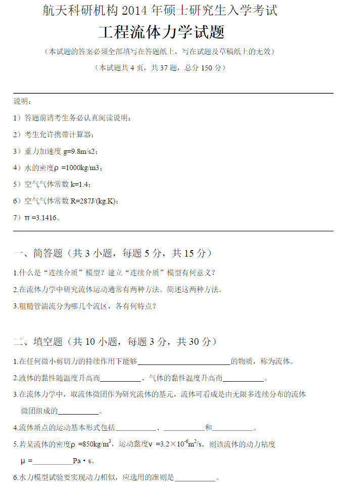 图为:09年哈工大工程流体力学考研真题解析 ...