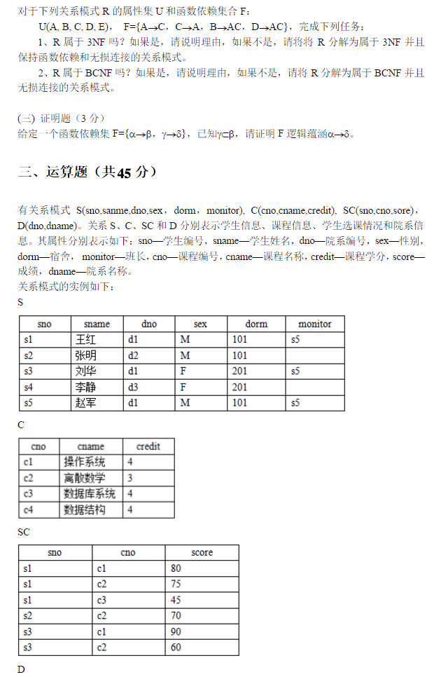 山东大学2014-2015数据库系统期末考试原题回忆版(2)