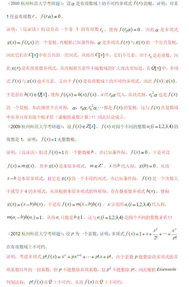 2008-2014年杭州师范大学高等代数考研真题试卷(多项式部分)答案