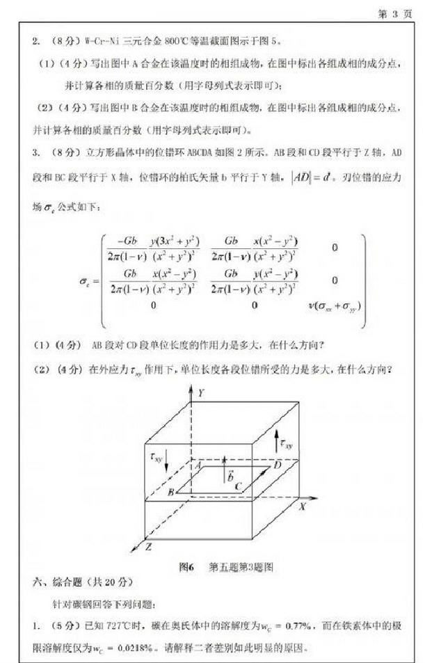 西安交通大学2006-2007学年材料科学基础1考试试题及答案(4)
