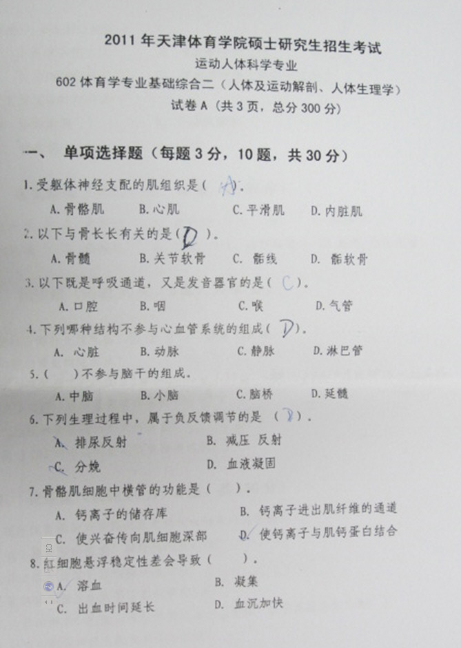 专业课考研资料 本站小编 免费考研网 2016-07-31A人体和运动解剖
