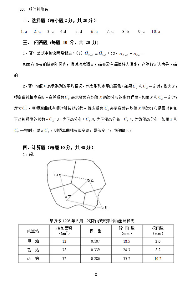 武汉大学2002-2000工程水文学考研真题详细答案(8)