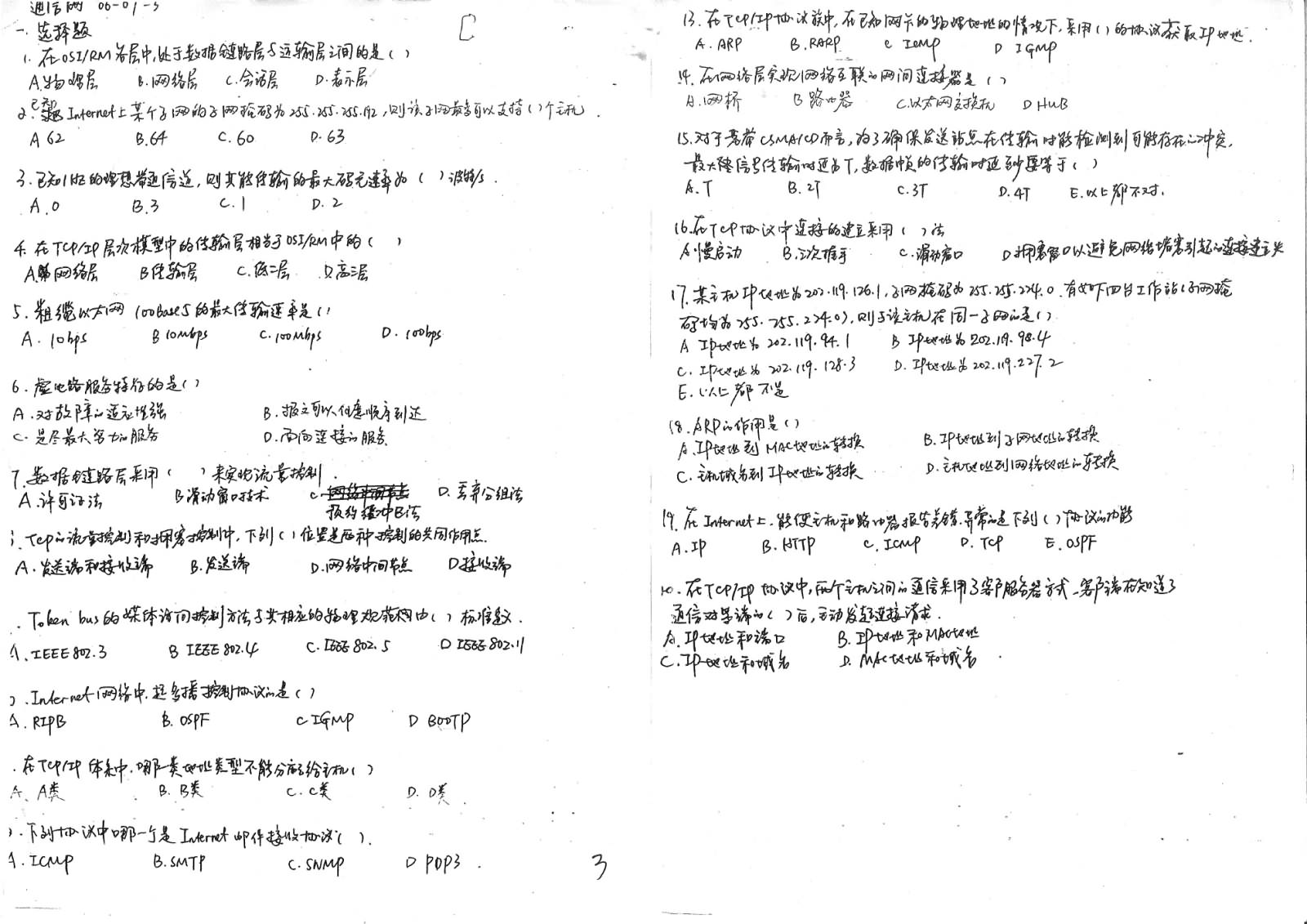 东南大学2006-2007-3信息通信网络概论期末考试试卷