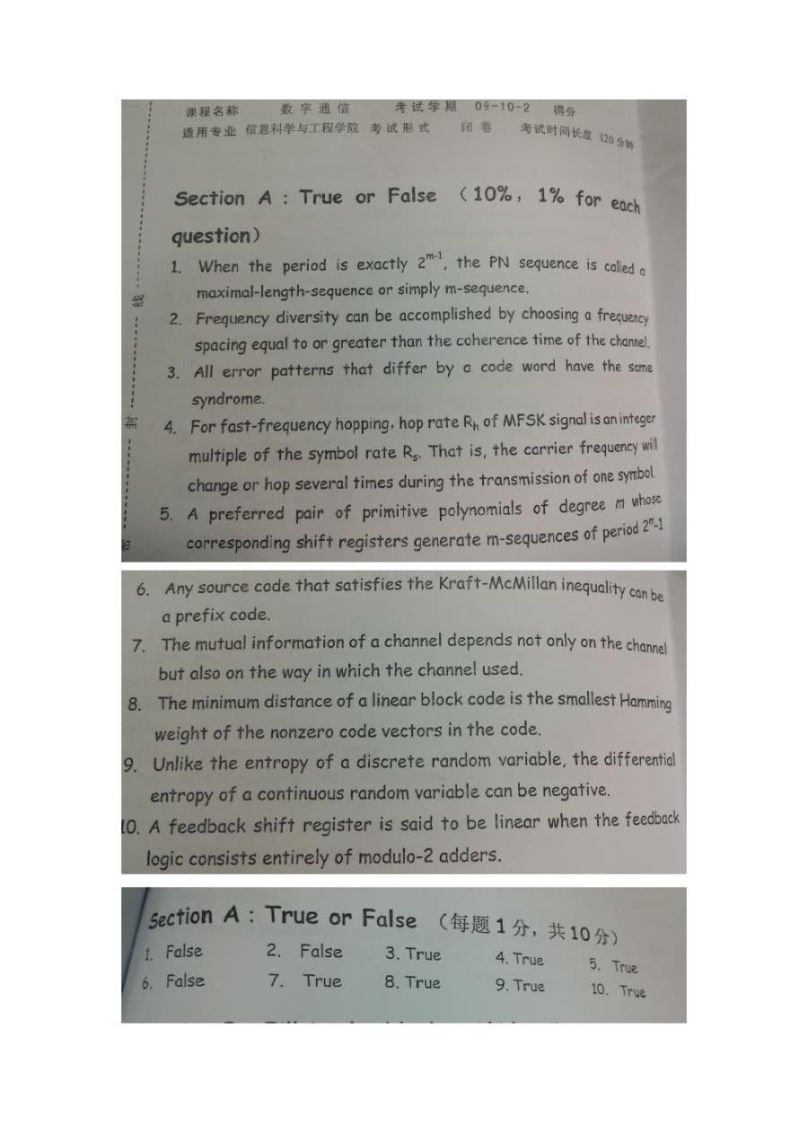 东南大学2009-2010-2数字通信期末试卷