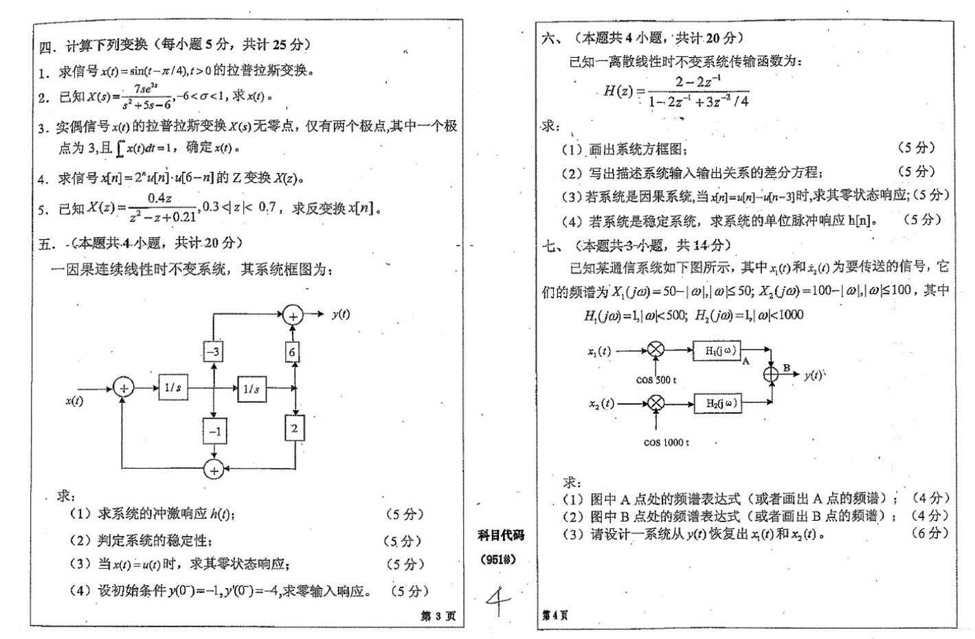 四川大学考研信号与系统(951)2008-2006年考研真题(2)