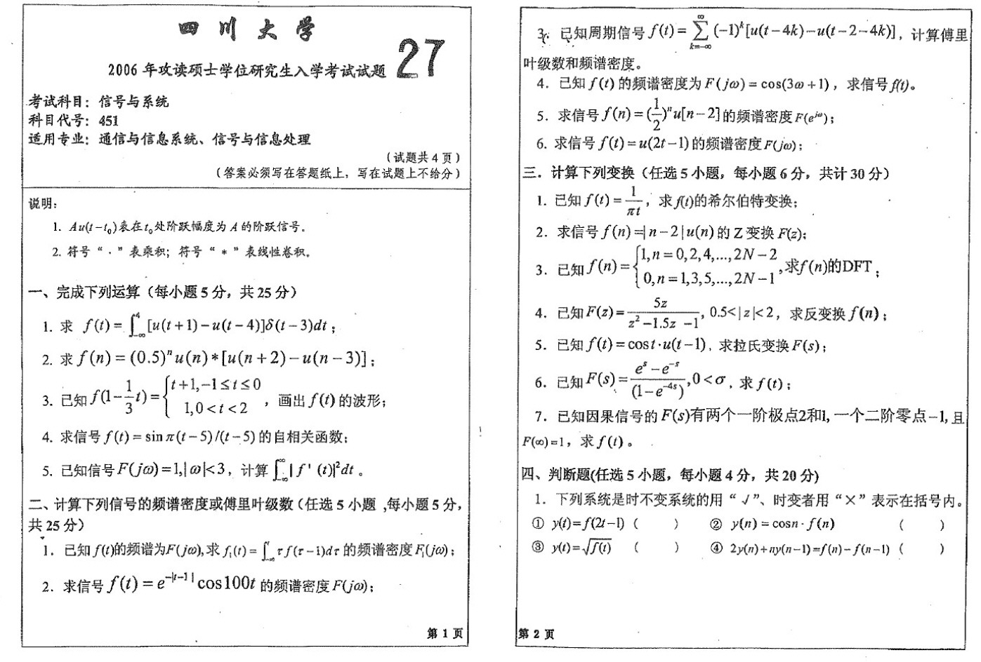 四川大学考研信号与系统(951)2008-2006年考研真题(3)