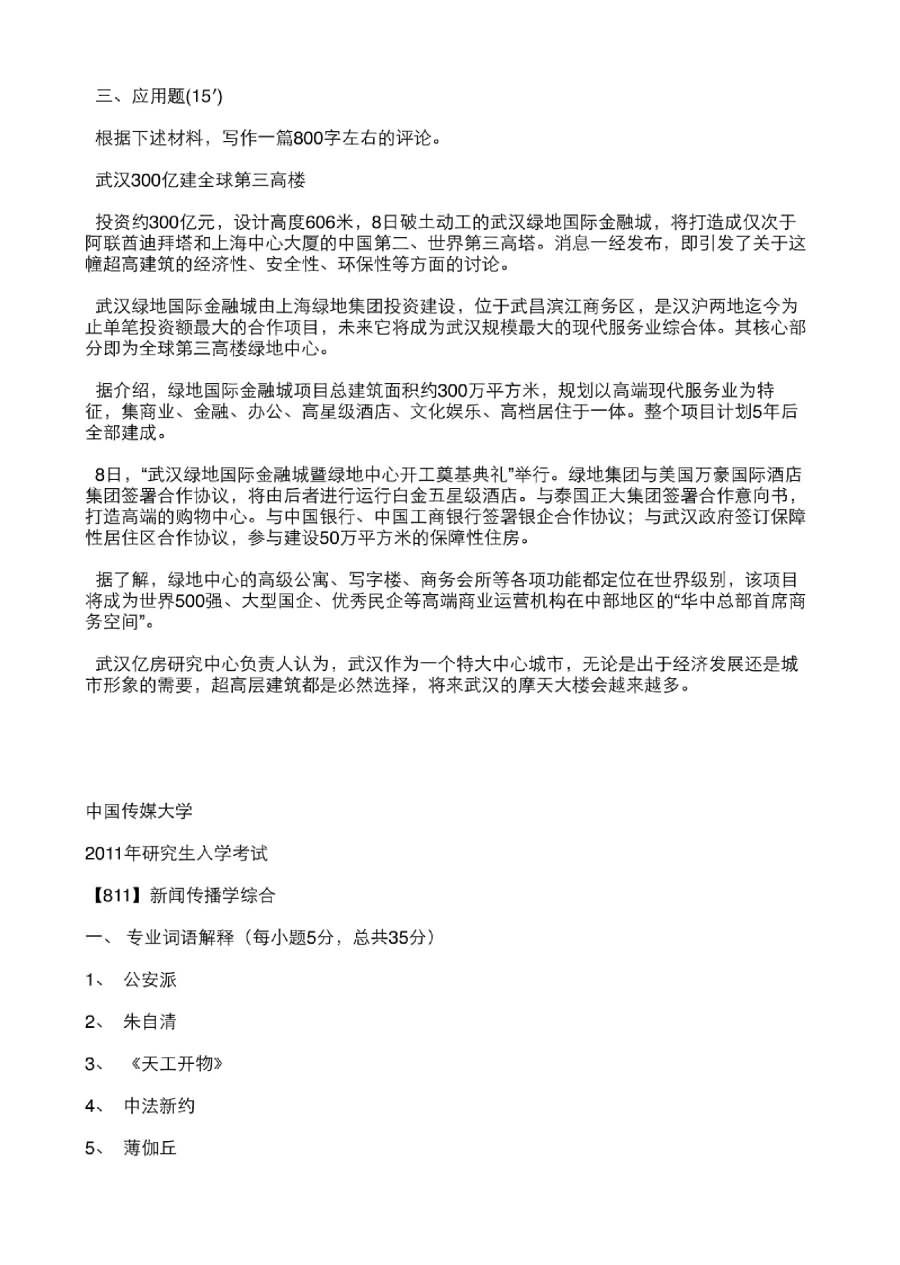 2011年中国传媒大学新闻学基础和文史综合考研真题(2)