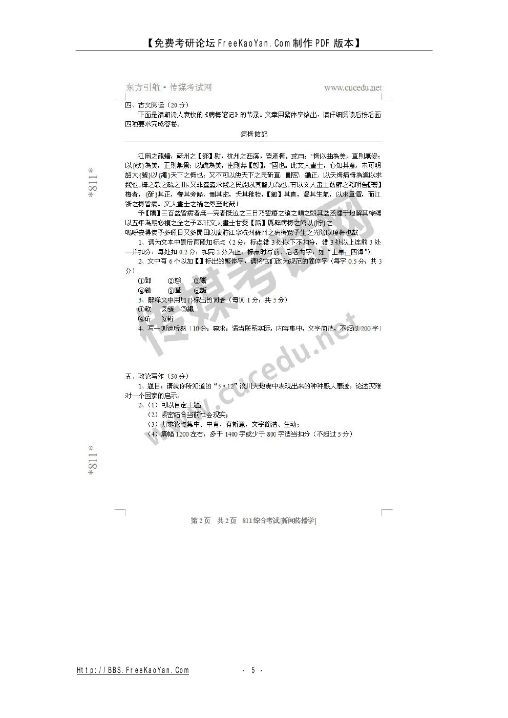 • 2011年中国传媒大学新闻学基础和文史综合考研真题