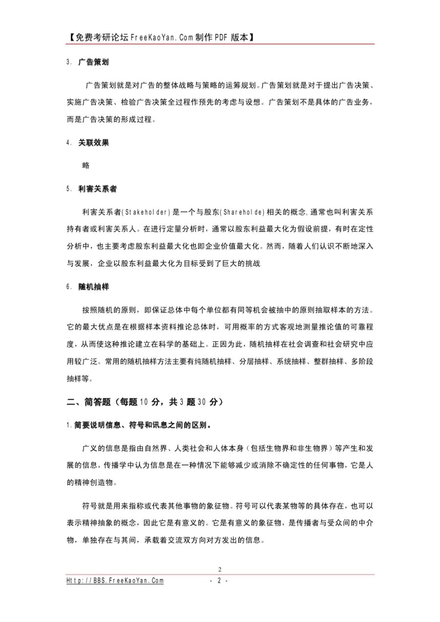 • 2011年中国传媒大学考研广告学真题——广告传播理论(回忆版)(含2010、2009、2008年试题)