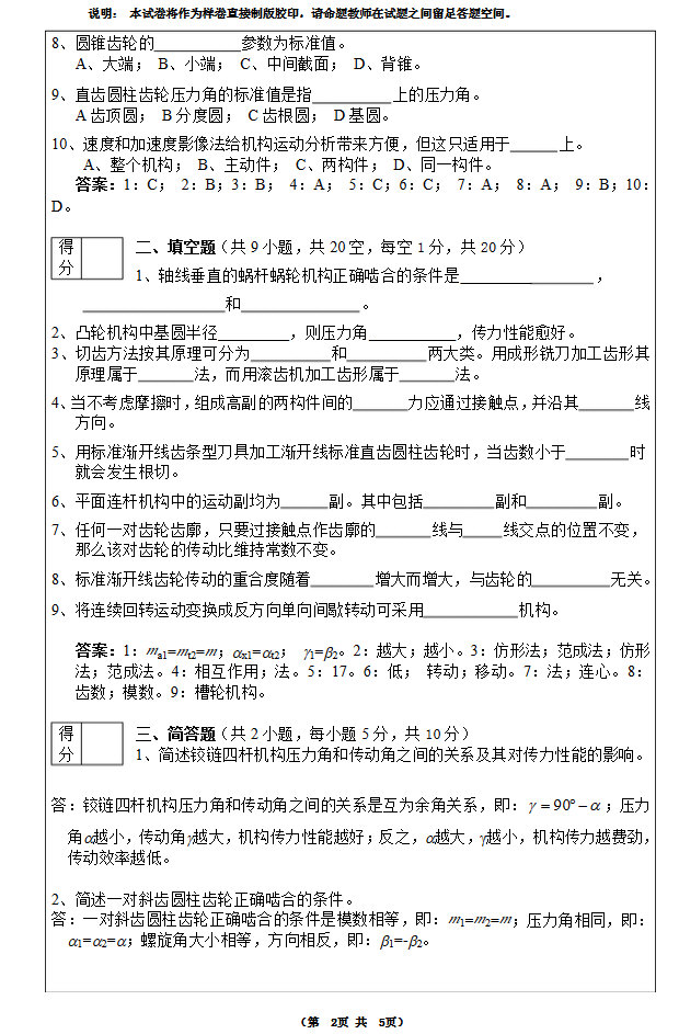 2016年湘潭大学2014级机械学院机械原理复习试卷(2)