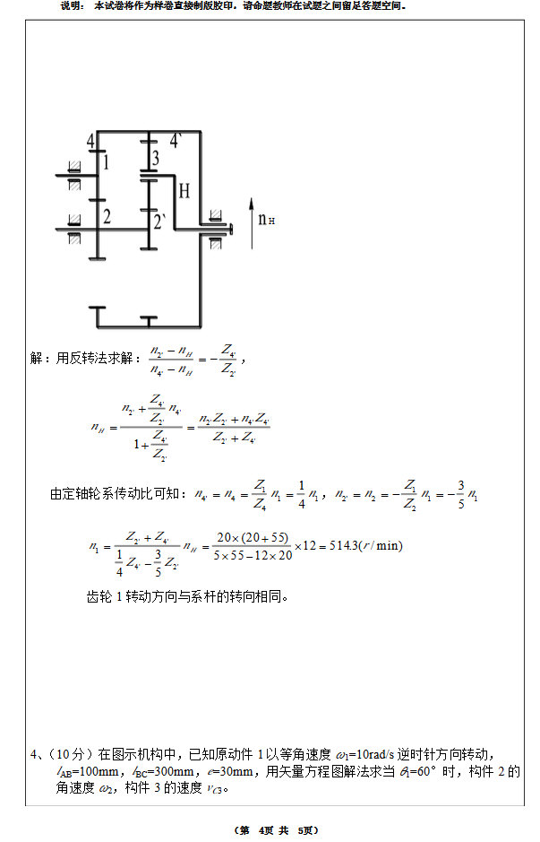 2016年湘潭大学2014级机械学院机械原理复习试卷(4)