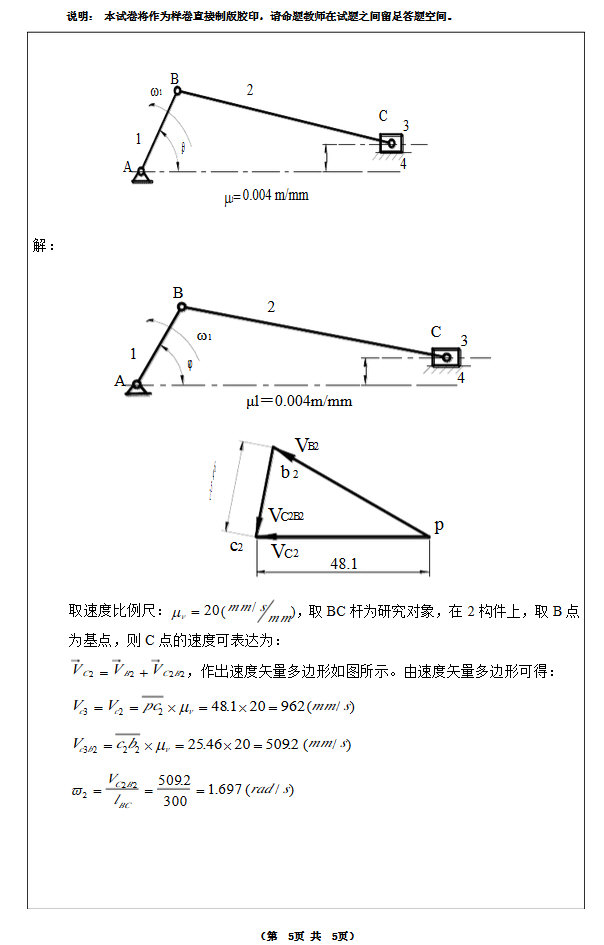 2016年湘潭大学2014级机械学院机械原理复习试卷(5)