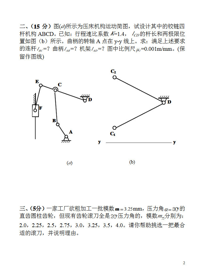 北京交通大学机械原理考试试题(月考2-2016)(2)