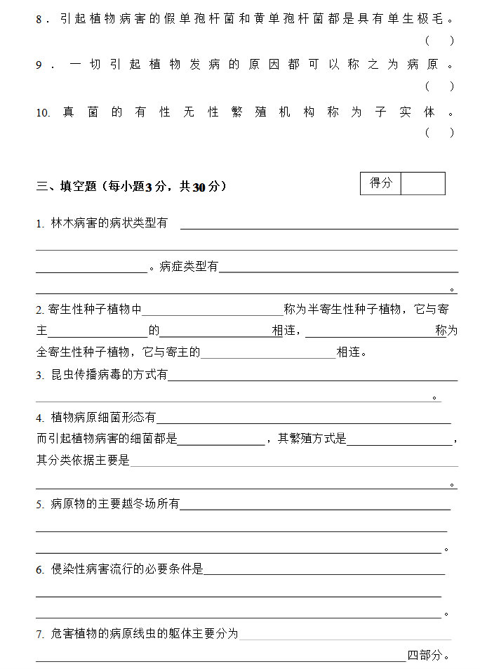 浙江农林大学2011-2012林木病理学期末试卷(7)