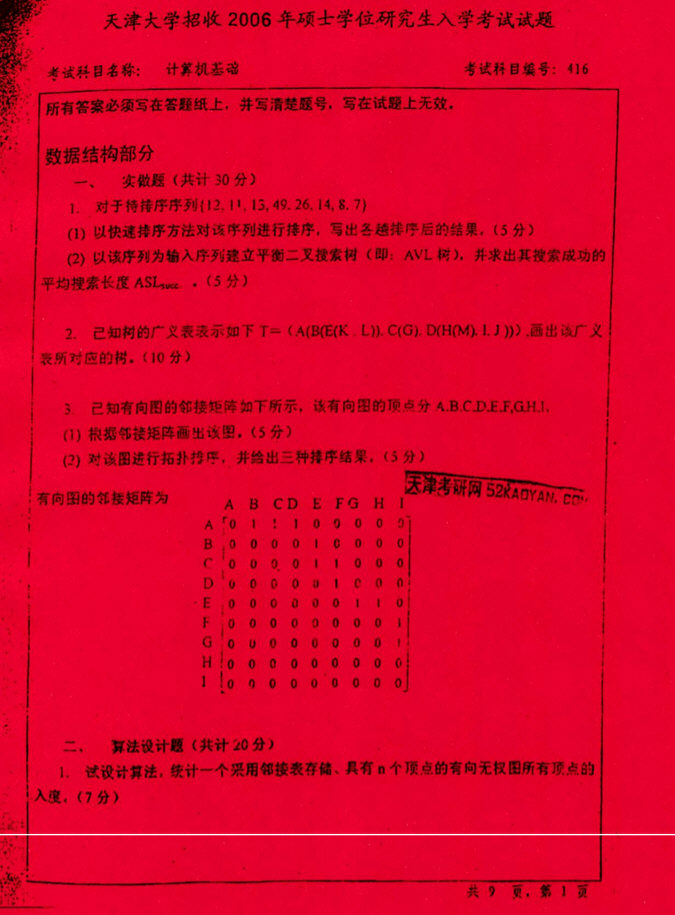 专业课考研资料 本站小编 免费考研网 2016-08-19最新硕士研究生入学考试复习资料_数据结构考研计算机复习资料