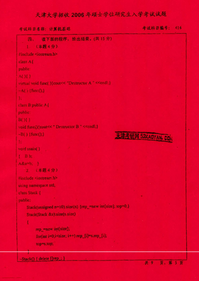 天津大学计算机考研2006年数据结构和程序设计真题(5)