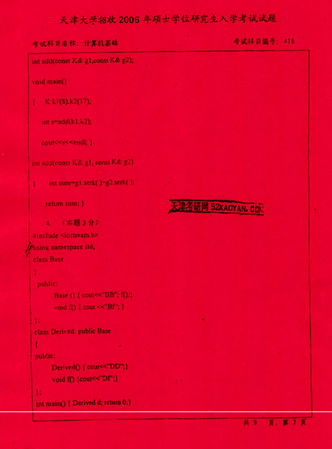 天津大学计算机考研2006年数据结构和程序设计真题(7)