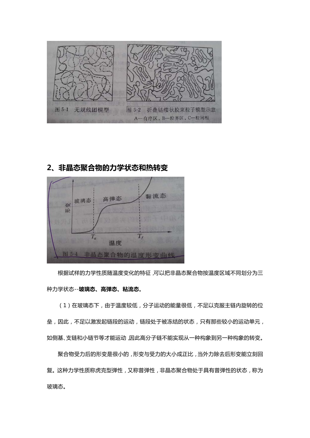 一、名词解释 (1)剪切带与银纹 (2)滞后与内耗 (3)玻璃化转变与次级转变 (4)构型与构象 (5)内聚能密度与溶度参数 二、填空题 1、用膜渗透压法可测定 均分子量,用光散射法可测定 均分子量,用粘度法可测定 均分子量。 2、在利用光散射法测定聚合物的分子量时,利用Zimm作图法可以得到 、 、 三个参数。 3、升温速度 ...