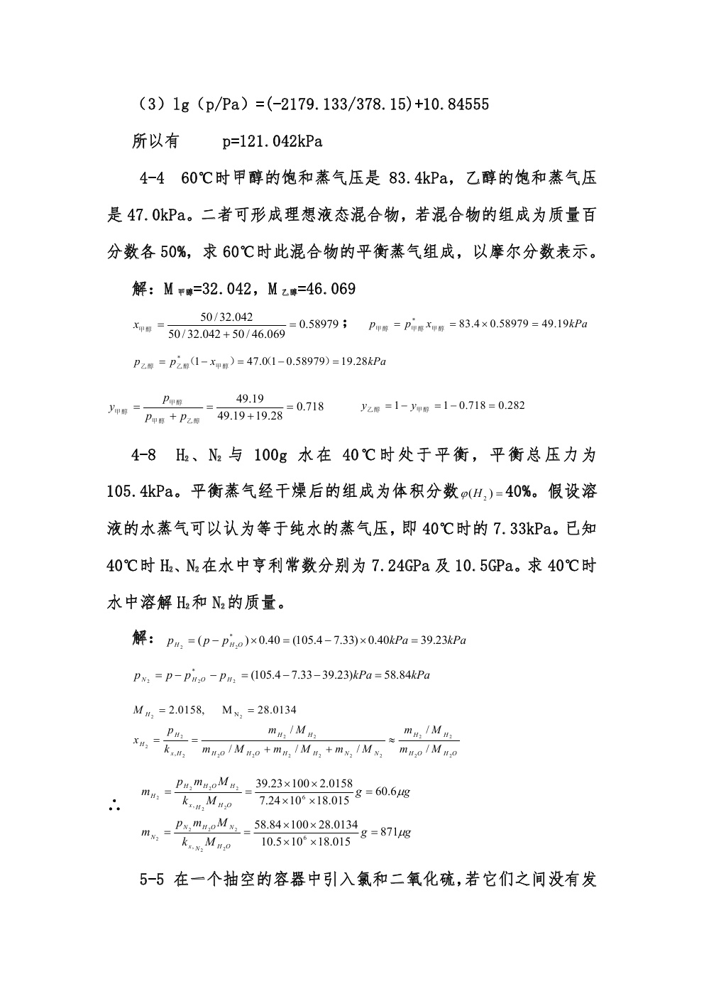 西安建筑科技大学物理化学期末作业习题答案 考研参考用(10)