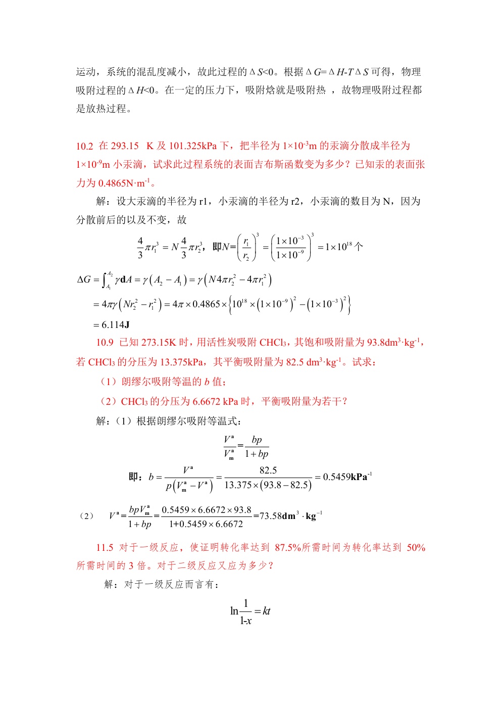 西安建筑科技大学物理化学期末作业习题答案 考研参考用(15)
