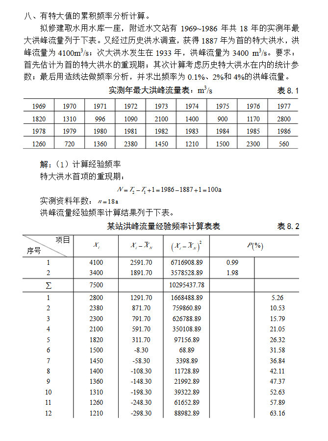 878水文学 (1)基本概念:水循环,降雨、径流(地表、地下)、蒸发、下渗,水量平衡,产流、汇流,水文频率、重现期,三性审查。(2)基本方法:统计分析法,水文比拟法,相关分析法,初损后损法,典型放大法,单位线法,等流时线法,马斯京根法。(3)基本计算:频率计算,设计暴雨计算,设计洪水计算,产 ...