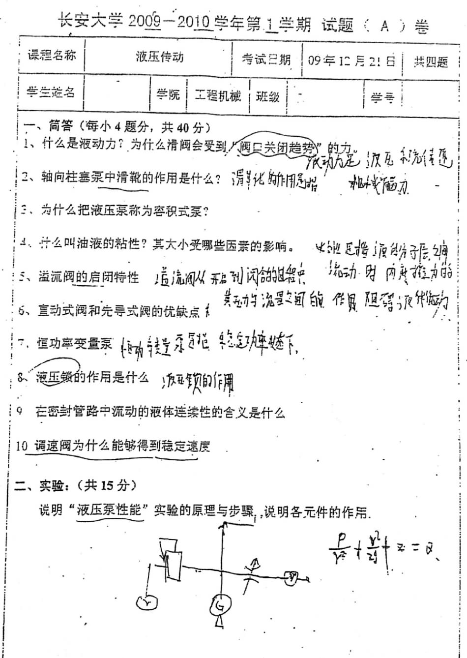 专业课考研资料 本站小编 免费考研网 2016-08-242015长安大学考研液压复试笔试题回忆
