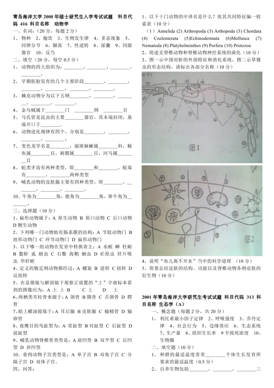 中国海洋大学416(816)普通动物学与普通生态学各年真题汇总加备考资料(图文)