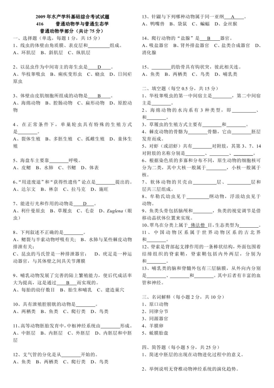 中国海洋大学416(816)普通动物学与普通生态学各年真题汇总加备考资料(图文)(10)
