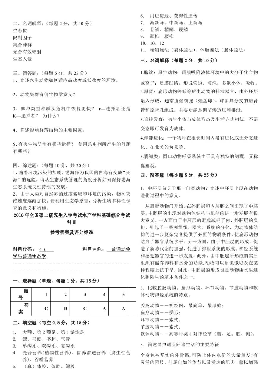 中国海洋大学416(816)普通动物学与普通生态学各年真题汇总加备考资料(图文)(12)