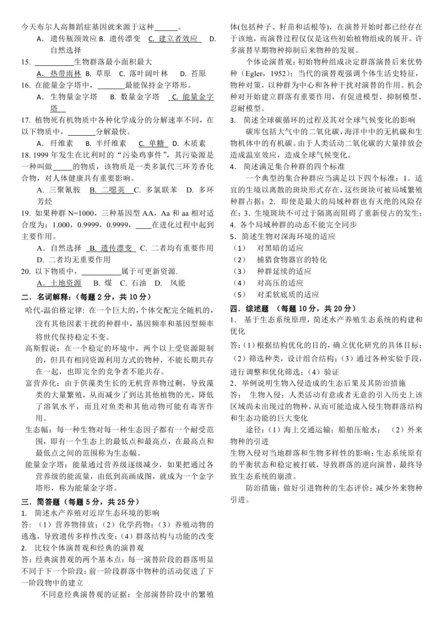 中国海洋大学416(816)普通动物学与普通生态学各年真题汇总加备考资料(图文)(14)