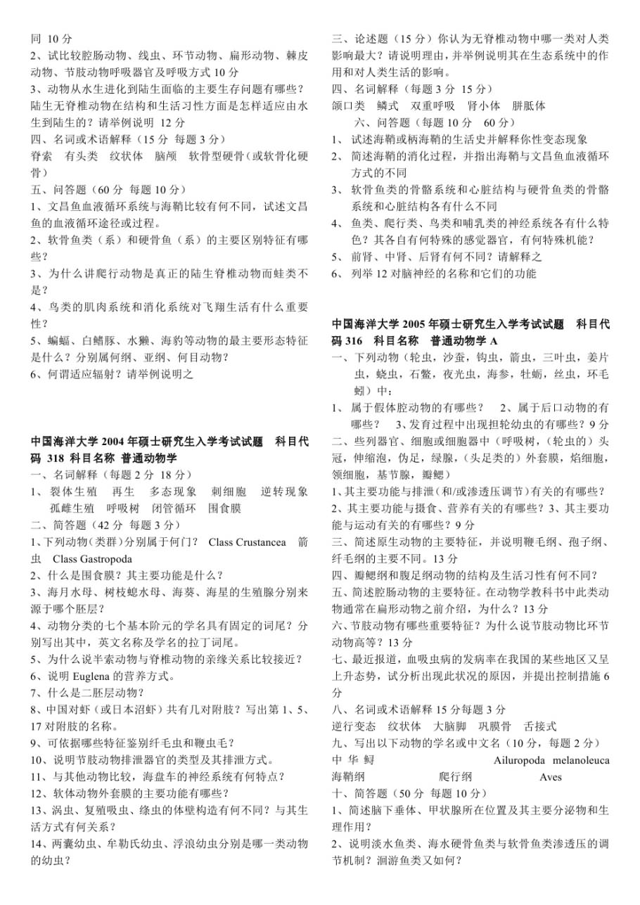 中国海洋大学416(816)普通动物学与普通生态学各年真题汇总加备考资料(图文)(5)