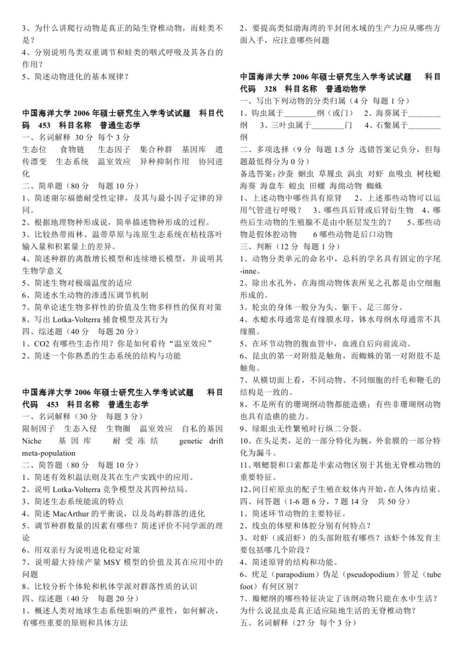 中国海洋大学416(816)普通动物学与普通生态学各年真题汇总加备考资料(图文)(6)