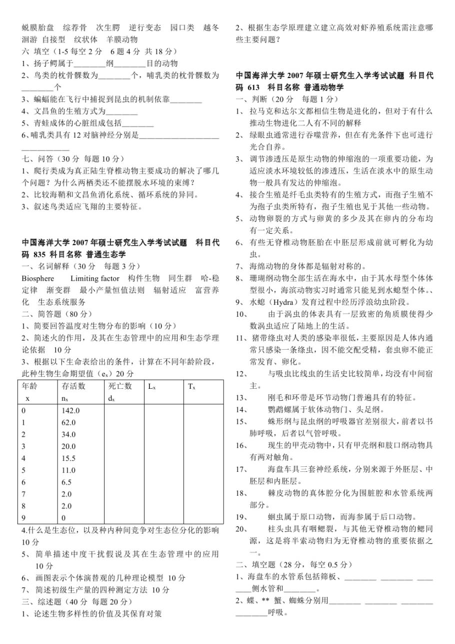 中国海洋大学416(816)普通动物学与普通生态学各年真题汇总加备考资料(图文)(7)