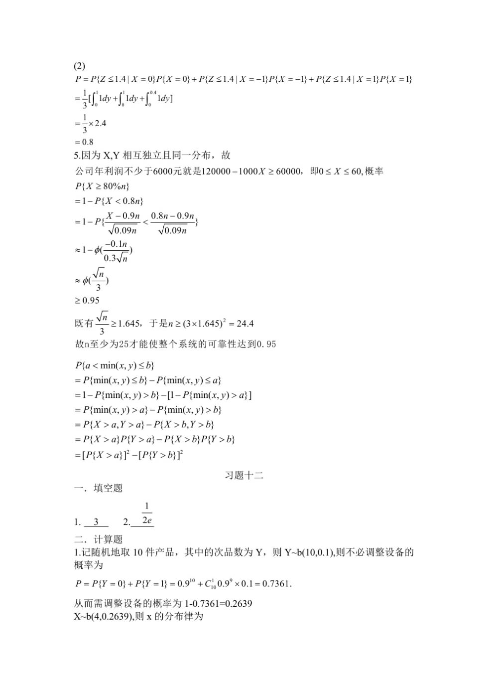 长江大学概率论与数理统计习题册答案(15)