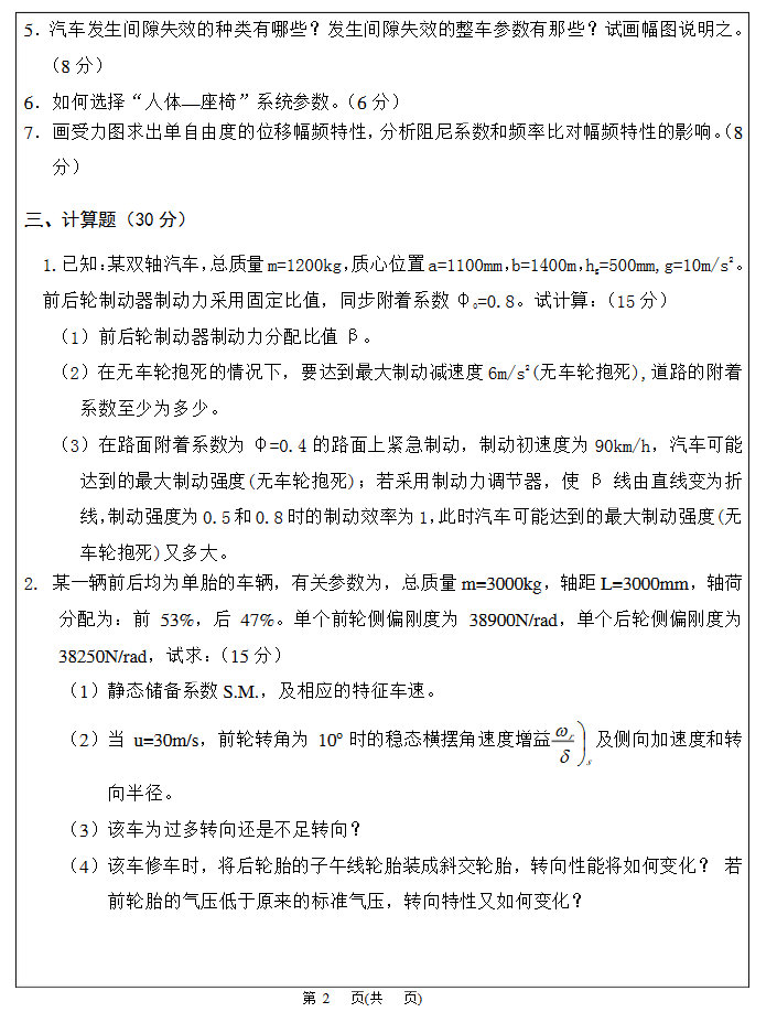 2013长安大学汽车理论A期末考试试卷带详细答案(2)