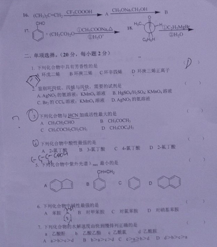 河南师范大学2011年研究生有机化学专业综合复试考研试题(2)