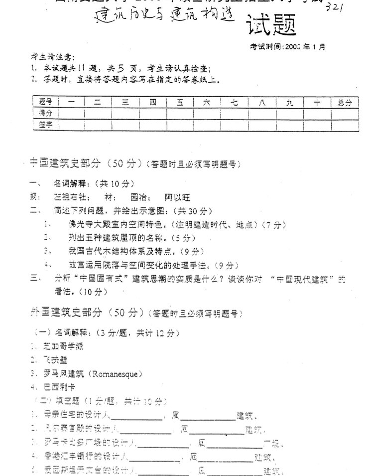 西南交通大学2003建筑历史与建筑技术考研真题