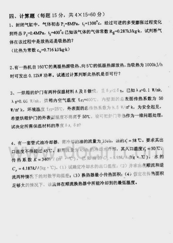 2006武汉理工大学工程热力学和传热学真题(2)