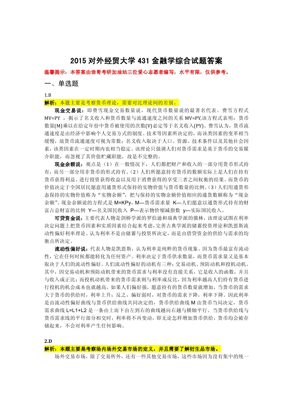 • 北京大学431金融学综合[专业硕士]历年考研真题汇编