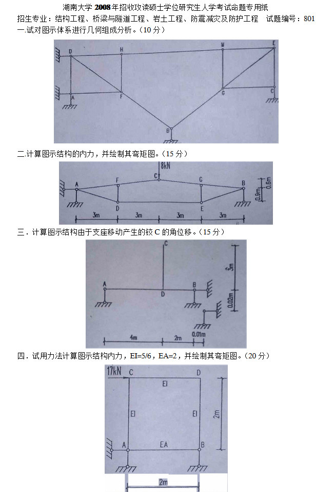 湖南大学2006-2009年结构力学考研真题及答案(7)