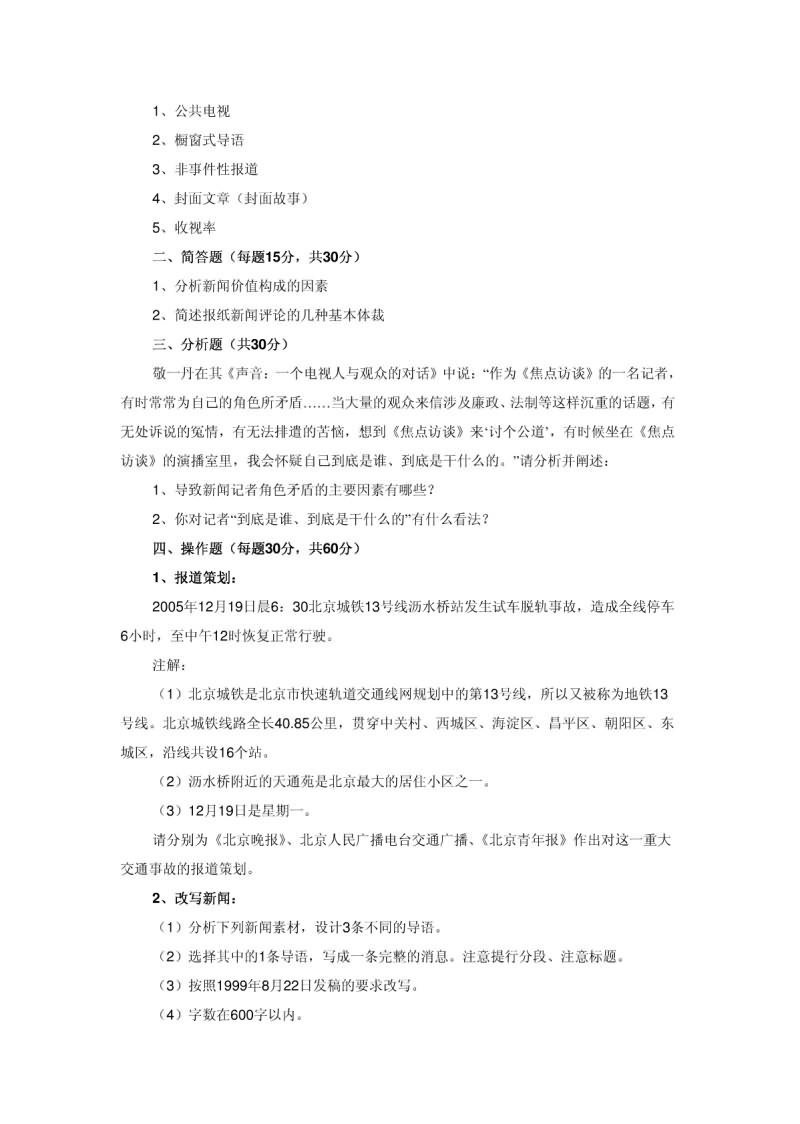 2015华中师范大学新闻与传播考研真题 334 一、名词解释: 解释性报道、议论性导语、系列报道、新闻发现力、现场观察 二、操作题: 1、写一个采访提纲关于利率下调 ; 2、改写标题复合型标题两个并列式标题一个 ; 3、改写消息公共稿类型的一个材料 ; 4、分析媒体选稿标准 是关于楚报的头版稿件分析 ...
