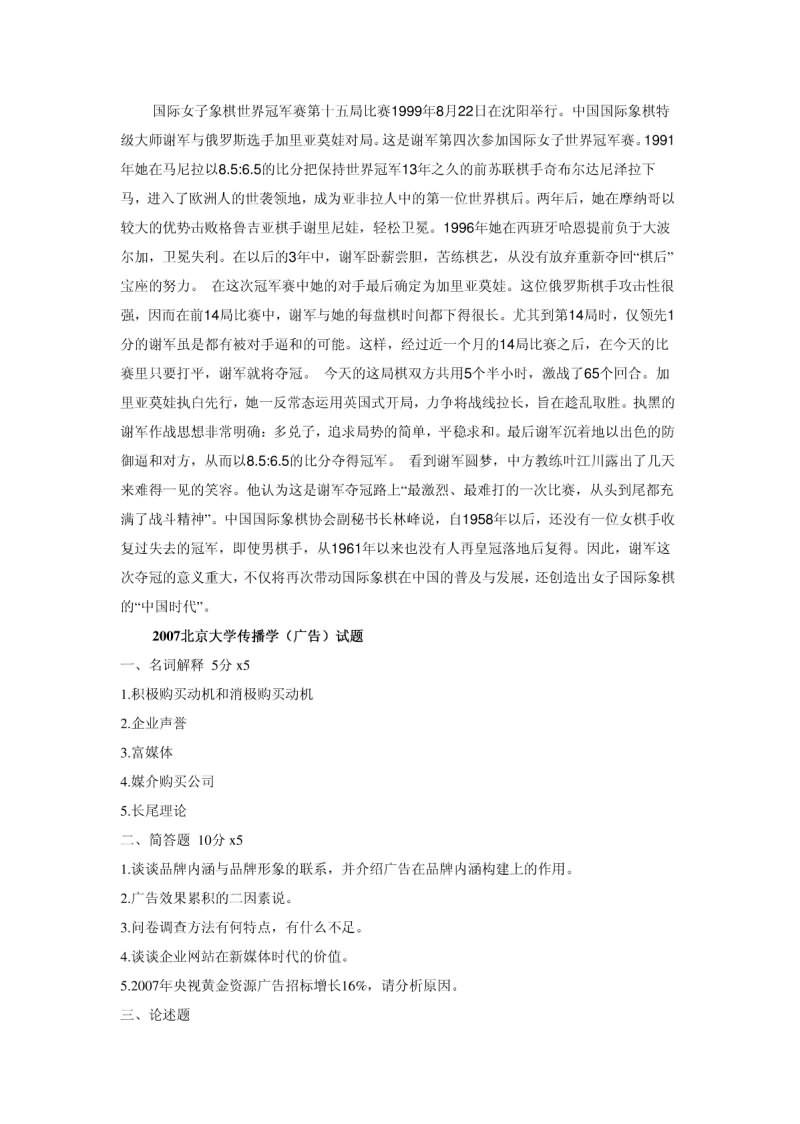 2015华中师范大学新闻与传播考研真题 334 一、名词解释: 解释性报道、议论性导语、系列报道、新闻发现力、现场观察 二、操作题: 1、写一个采访提纲关于利率下调 ; 2、改写标题复合型标题两个并列式标题一个 ; 3、改写消息公共稿类型的一个材料 ; 4、分析媒体选稿标准 是关于楚报的头版稿件分析 ...